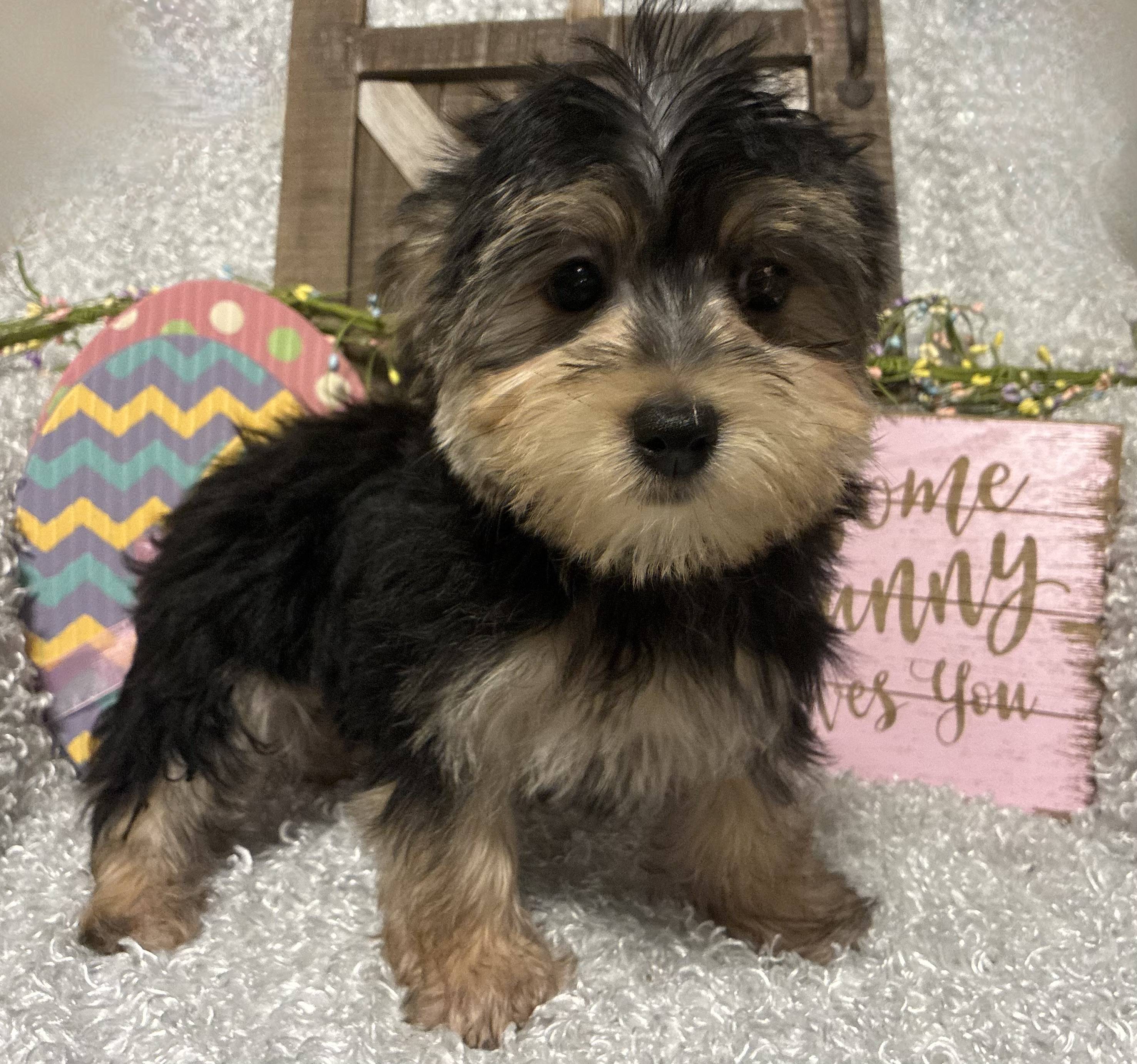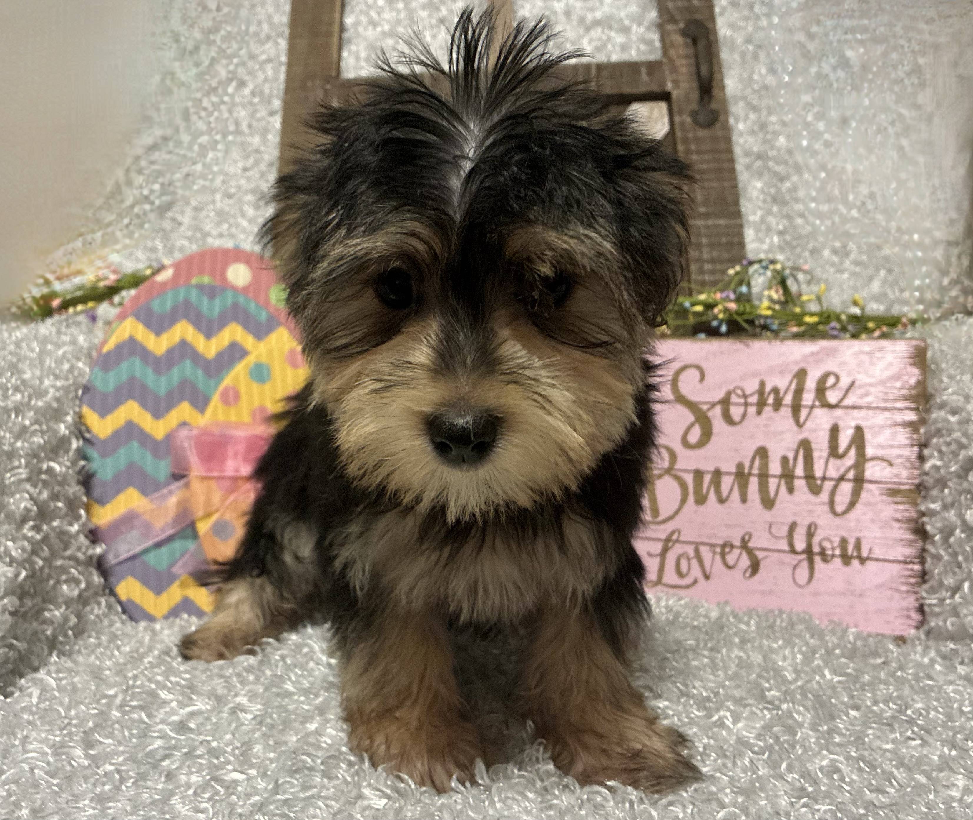 TOBY is a HANDSOME little male MORKIE (YORKSHIRE TERRIER/MALTESE MIX) puppy! He is so excited sit in your lap and give you puppy kisses! He loves to be held and has his bags ready to come home!!! He is ready to come home to his new family on around FEBRUARY 22,2026!! His beautiful Dam weighs 7 pounds. His handsome Sire weighs 5.9 pounds. His birthdate is DECEMBER 14, 2025. His weight on 03/03/26 is only 4.6 pounds! He is current on vaccinations and has been dewormed. His adoption cost is GREATLY REDUCED FROM $1025.00 TO $975.00 with a signed agreement to neuter him at 6 months of age. His adoption cost with breeding rights is $1725.00. State sales tax is included. Shipping is available for an additional charge. MC# 933000321216517
